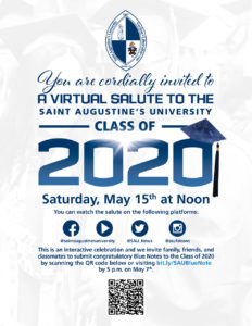 You are cordially invited to a Virtual Salute to the SAU Class of 2020 Friday, May 15 at Noon. Watch the program on our social media channels: Facebook @saintaugustinesuniversity YouTube @saintaugustinesuniversity Instagram @saufalcons